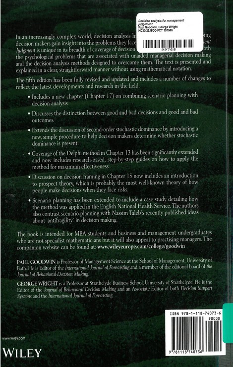 Decision Analysis for Management Judgment